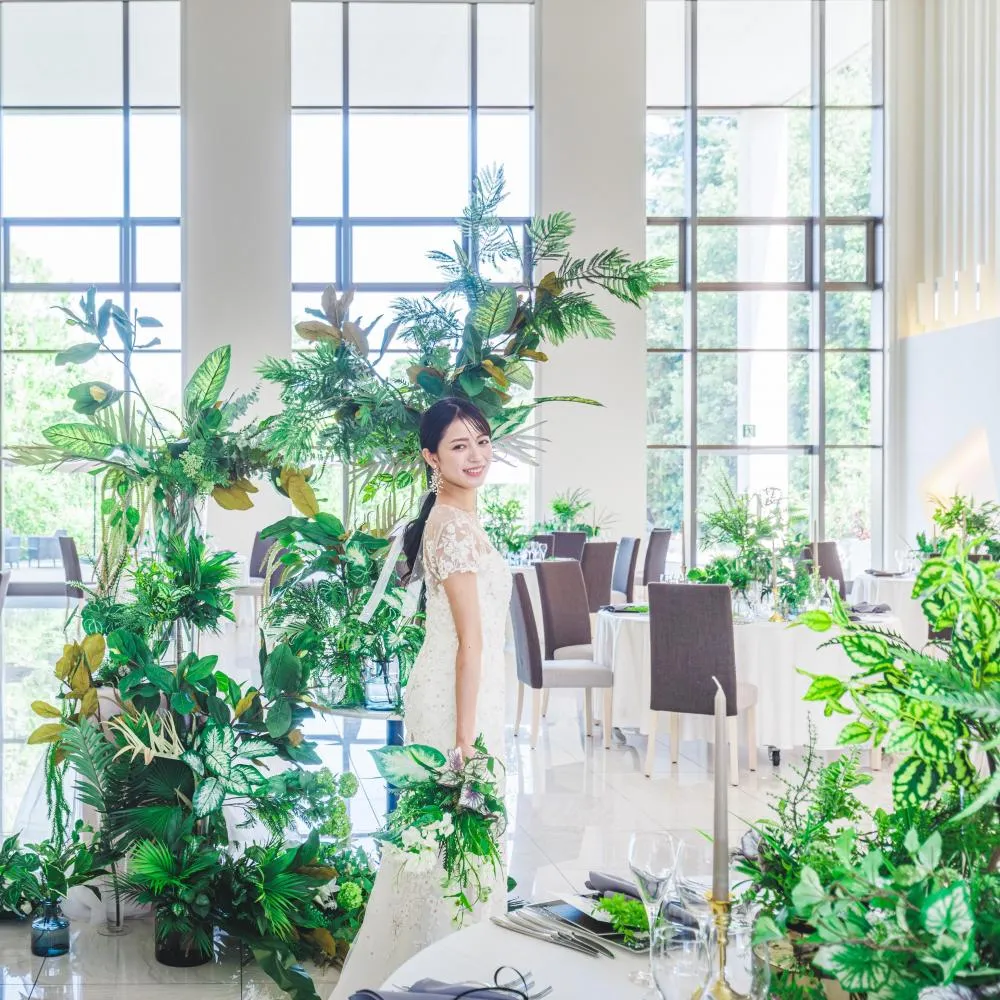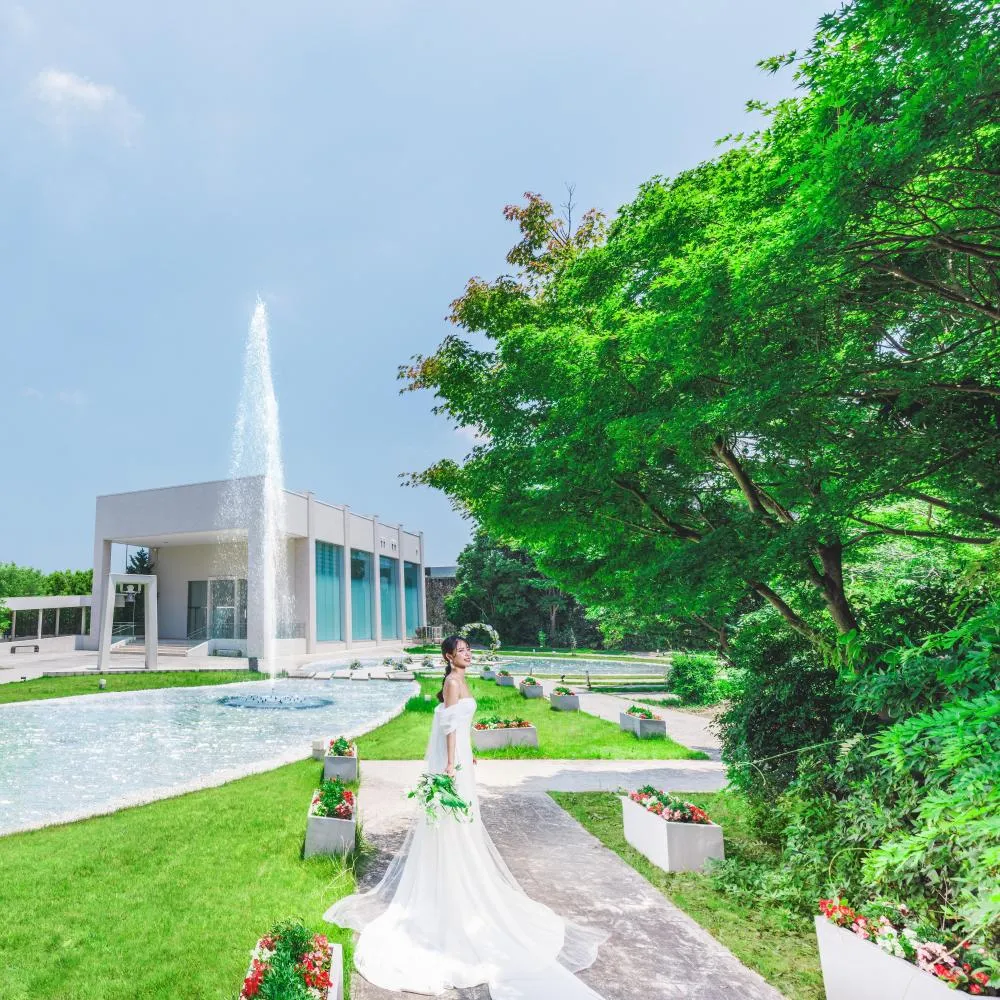結婚式場まるごと貸切で撮影が叶う特別プラン。純白ガラスチャペルや緑あふれる貸切ガーデンを舞台にふたりらしい瞬間を写真に残せます。衣装・ヘアメイク・撮影サポート付きで、特別な一日を。